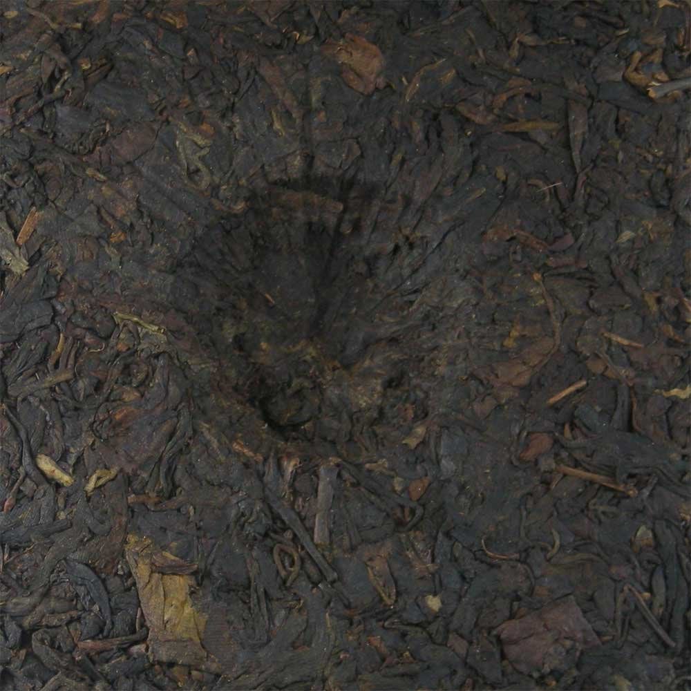 雲南省は思茅地区(現プアール市)、ここは主にハニ族が暮らす村で、興洋茶有限公司が管理する無公害茶園で良質の茶葉だけを手作業にて茶摘みした茶葉を自然乾燥させたものを主な原料として、高温で蒸発圧縮して作成されたプアール熟餅茶(完全後発酵熟茶)です。2008年に成形・製造され、長年の寝かせによって豊かな風味と深い香りを引き出しています。熟茶ファンにはたまらない逸品です。心地よいクセがあり毎日お飲みいただけます。最近の当店「おすすめ」の商品といえます。