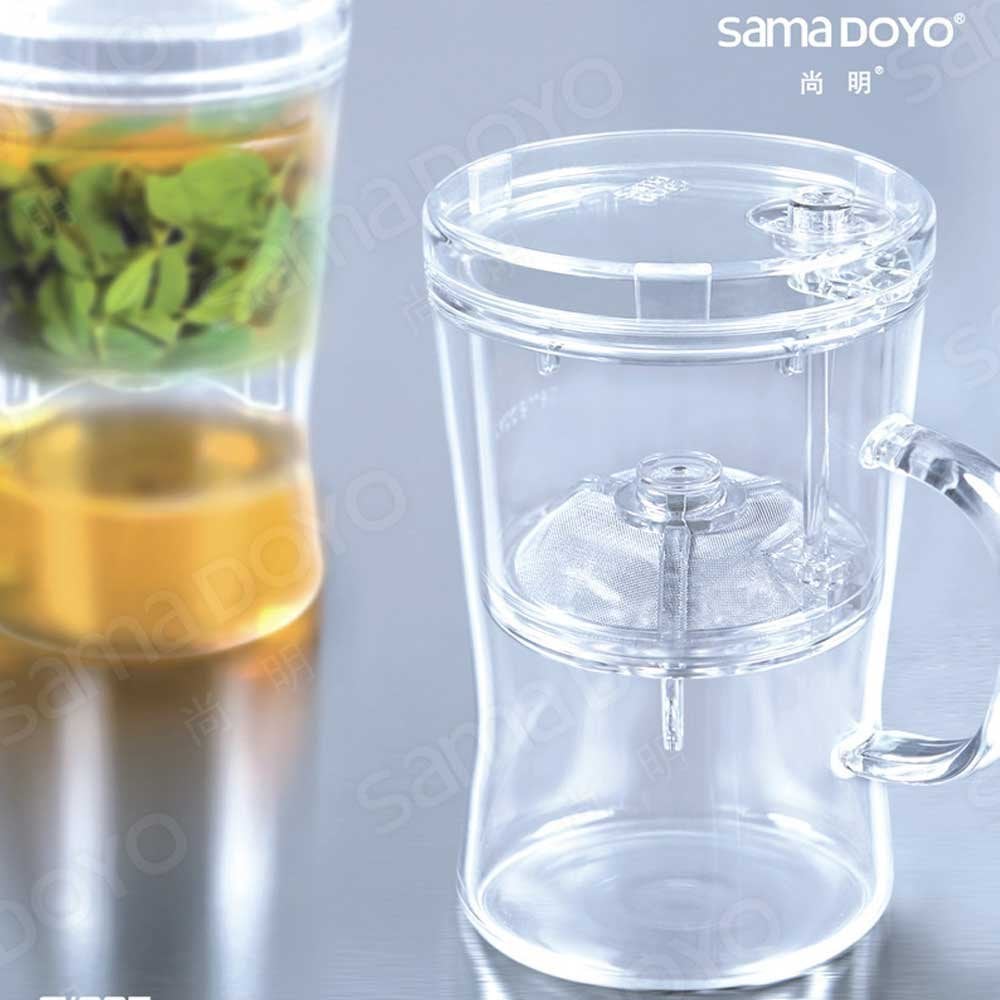 ※外坏(ガラス)は石塚硝子株式会社・内杯の耐熱プラスチック(FDA認可)は、日本帝人株式会社、金属部分は日本新日鉄鋼鉄公司から供給を受け、samaDOYO(東京)がデザインを担当。広州(中国) で組立て・製造。とことん日本にこだわった商品といえます。また、最大の特徴は機能面で、茶漉しのワンプッシュの玉部分の構造が大きく変わり従来以上のストレスの無い使い勝手の良いマルチマグカップの誕生と評価したい。